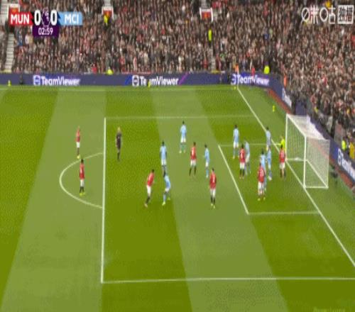 第15分钟,曼城右路斜传禁区,B席头球攻门顶高