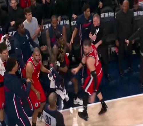 这场裁判的哨子真的是演都不演,装都不装了,在快船两节半就领先26分之后,裁判直接开始各种各样的乱吹。祖巴茨和范德彪在第4节出现了一次纠缠,裁判吹了双方犯规,可是肉眼可见的,那球是范德彪直接夹胳膊,夹着祖巴茨的胳膊,他就差直接把祖巴茨的手臂给卸了,一路夹着祖巴茨的手,裁判能吹双方犯规的,这球你能看懂吗?