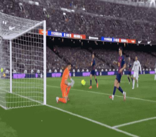 上半场结束前,巴萨门将加西亚扑救后,雷纳倒在了禁区内,裁判示意没有点球。