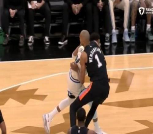文班在防守字母哥时与对方对撞膝盖痛苦倒地,现已返回更衣室 -